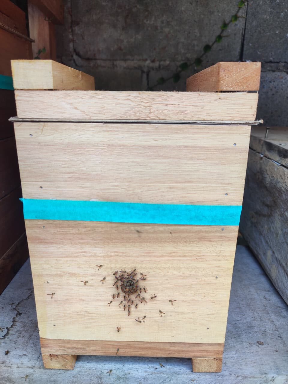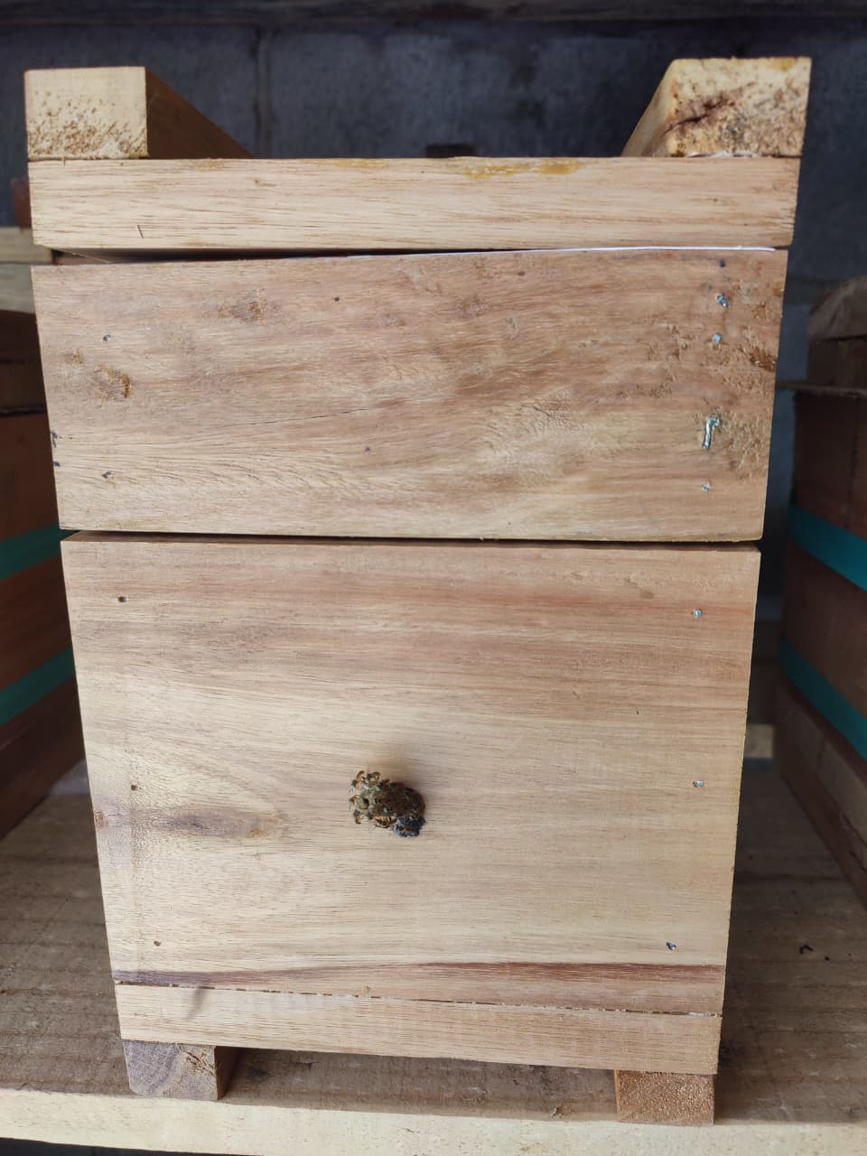 Nossas caixas padrão são feitas de eucalipto rosa, com espessura de 2cm à 3cm e medidas internas 12×12. A caixa vem com ninho, sobre ninho e uma melgueira.