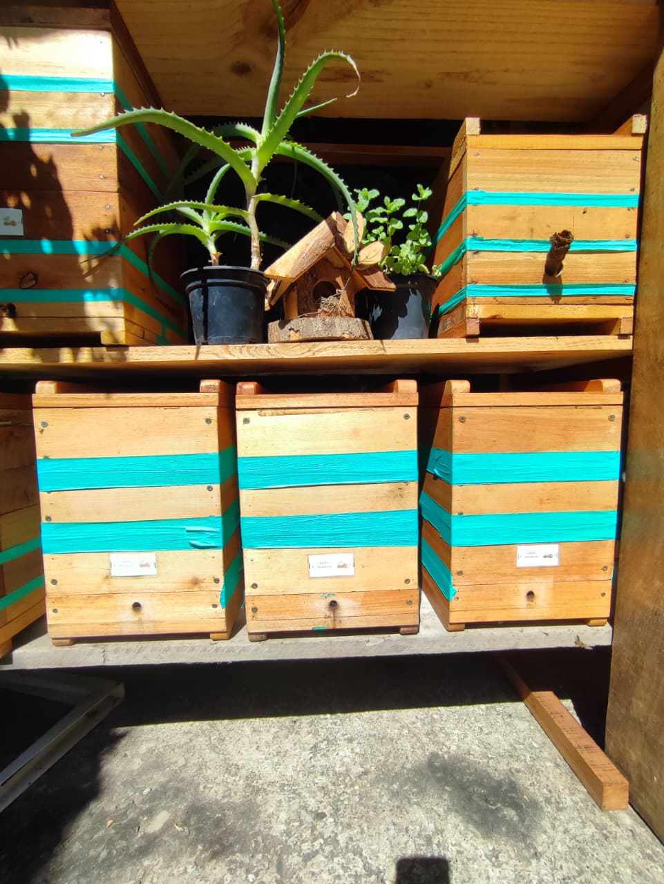 Nossas caixas padrão são feitas de eucalipto, com espessura de 3.5cm à 5cm, garantindo uma ótima termorregulação e proteção contra variações de temperatura e medidas internas 22×22. A caixa vem com um módulo padrão como lixeira, ninho e sobre ninho. Disponibilizamos módulos extras.